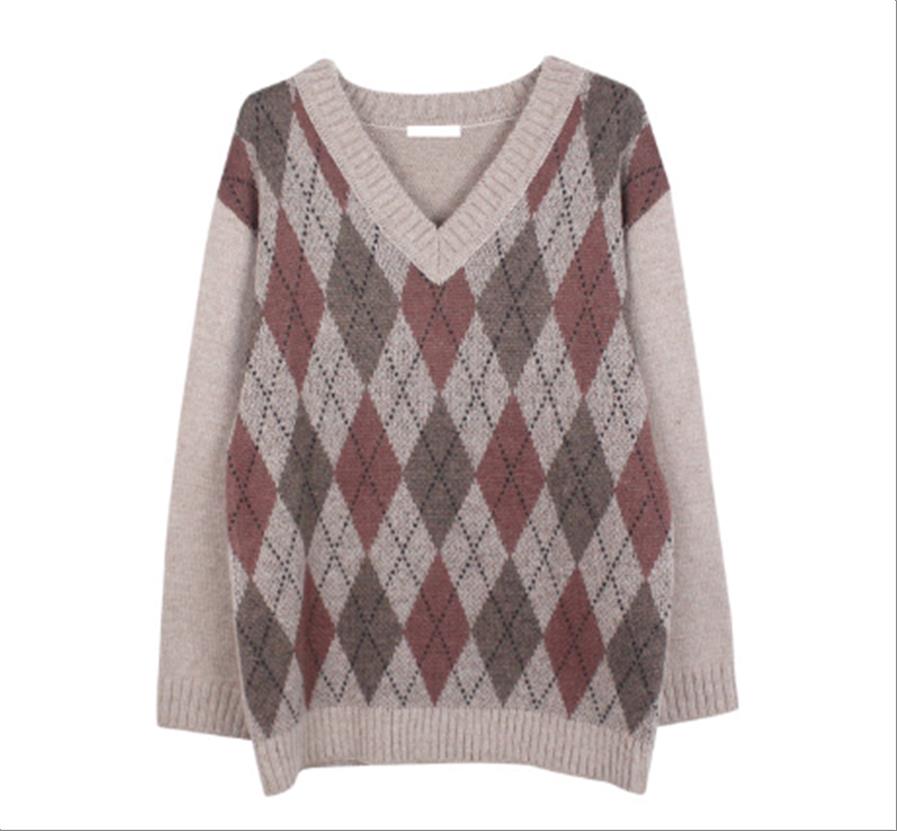 韩国官网款女装-上衣아가일니트