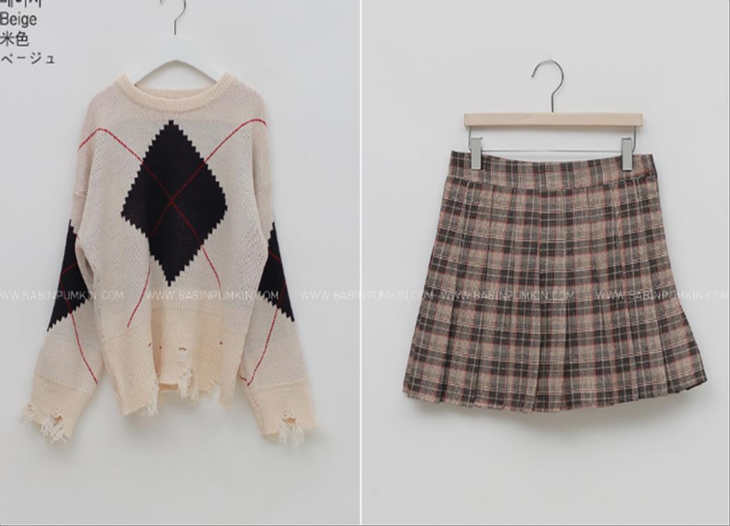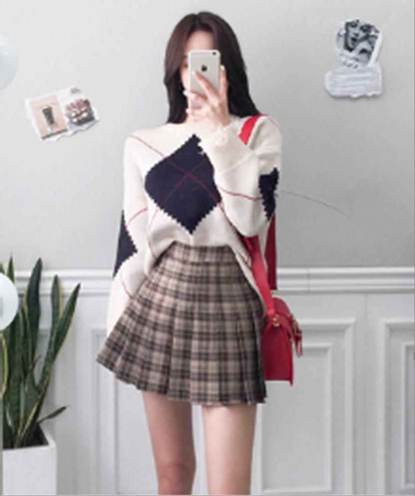 韩国官网款아가일니트치마