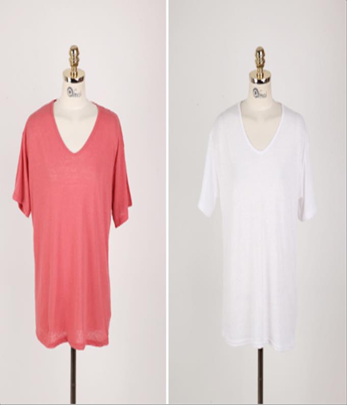 韩国官网款女装-上衣린넨UV넥T