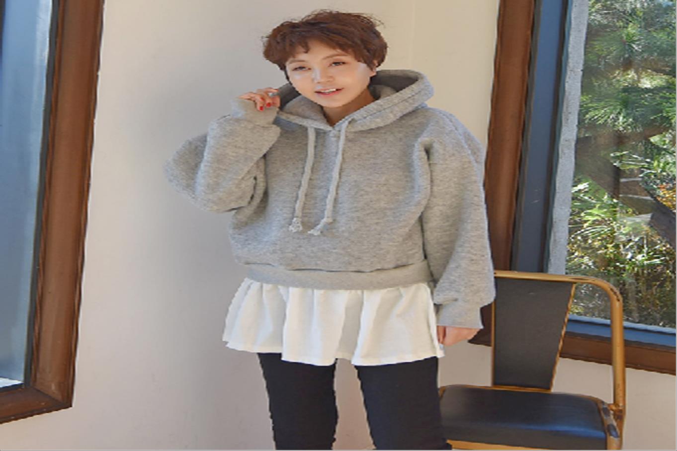 韩国官网款女装-上衣보들레이어드후드