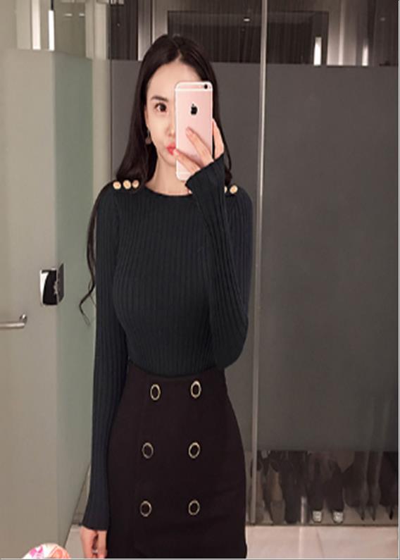 韩国官网款女装-上衣금단추니트