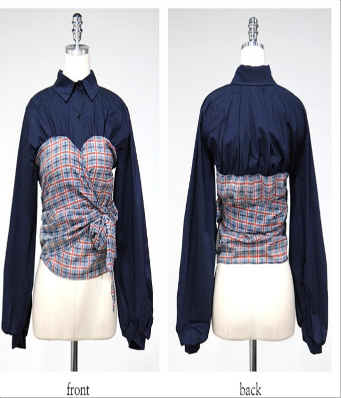 韩国官网款女装-上衣체크랩BL