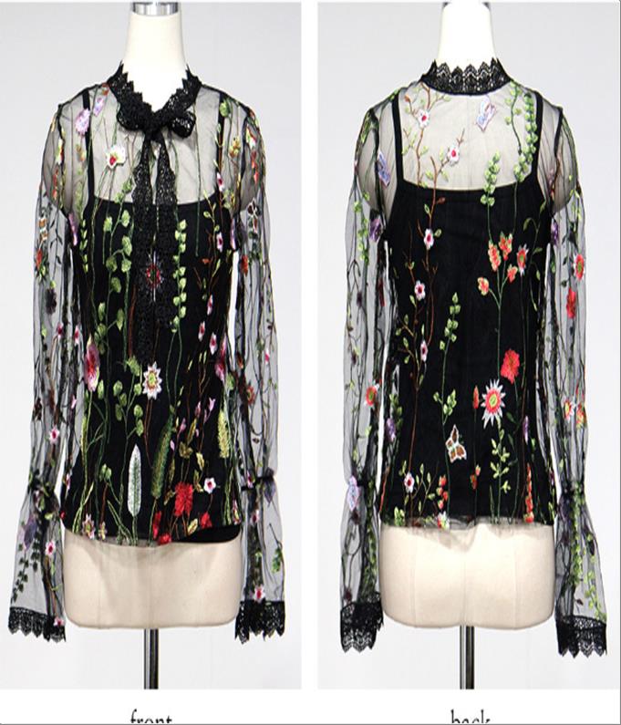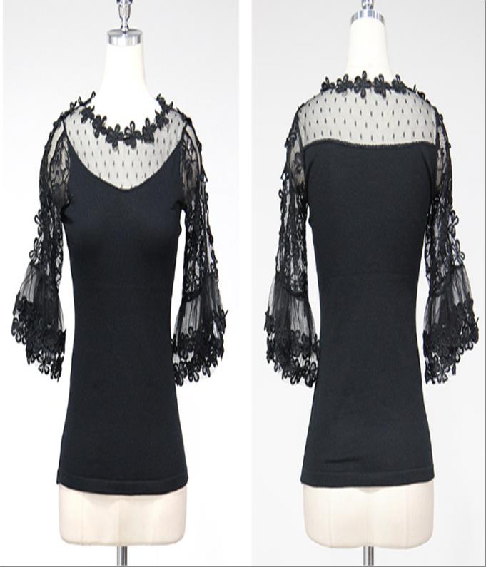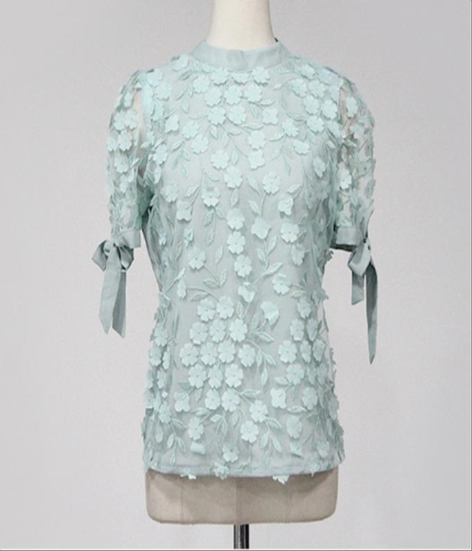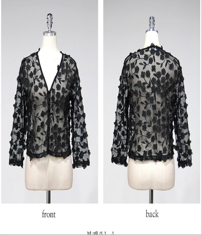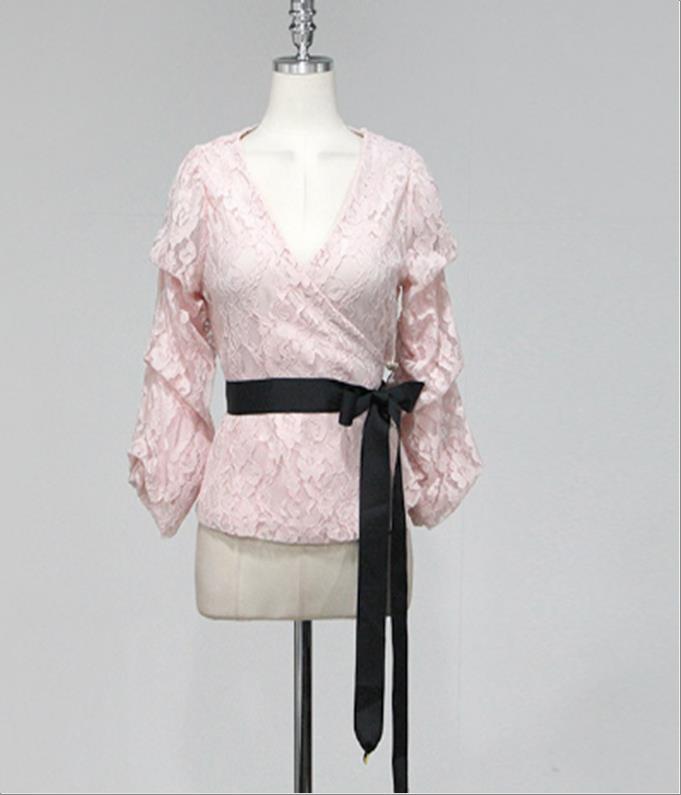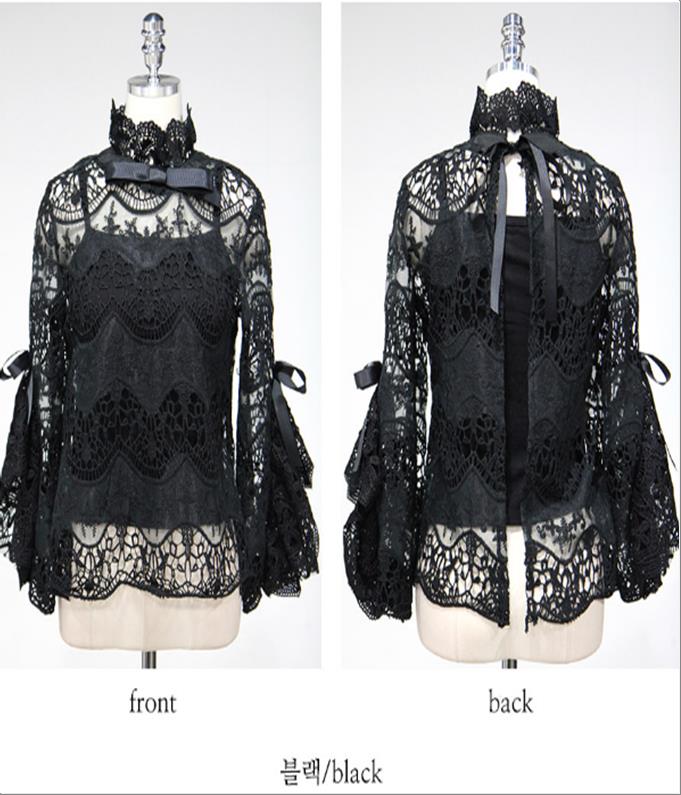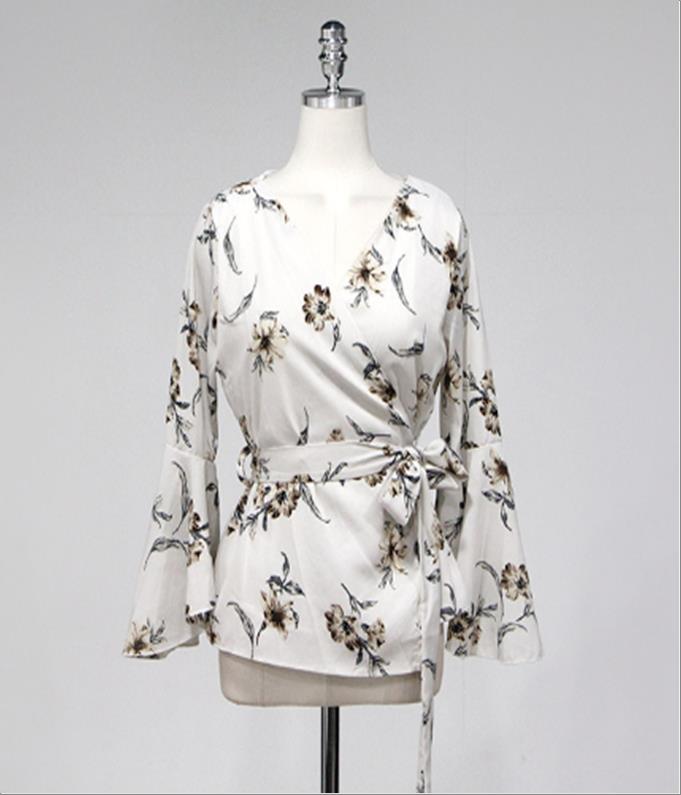 韩国官网款女装-上衣나팔소매꽃BL