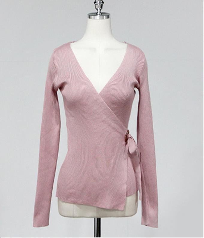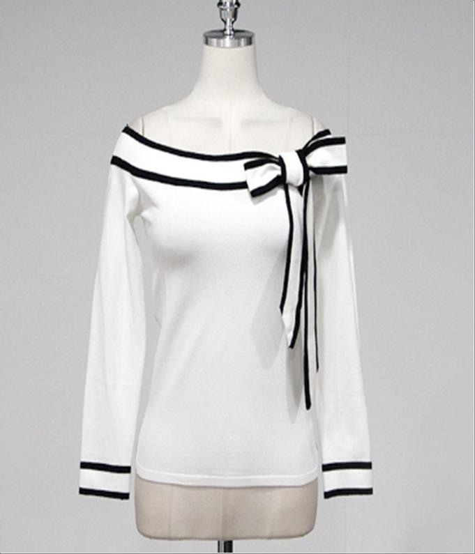 韩国官网款女装-上衣리본오프