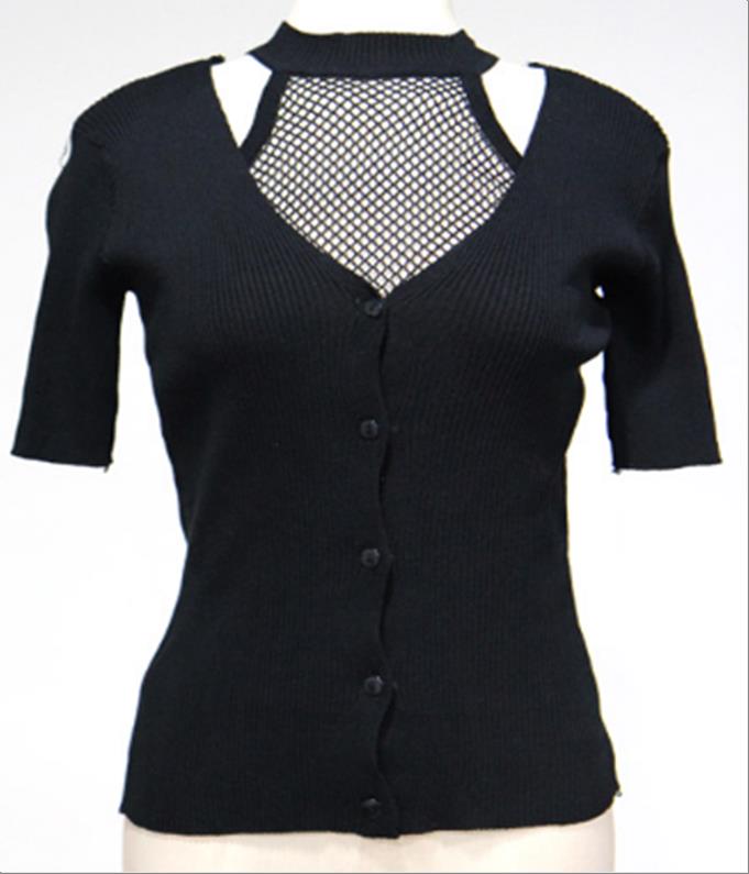 韩国官网款女装-上衣그물홀터니트