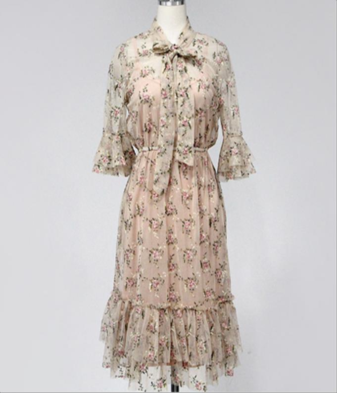 韩国官网款女装-裙子망사자수OPS