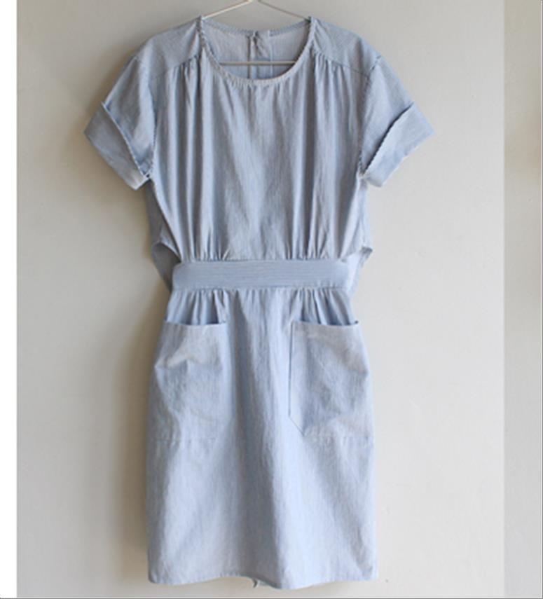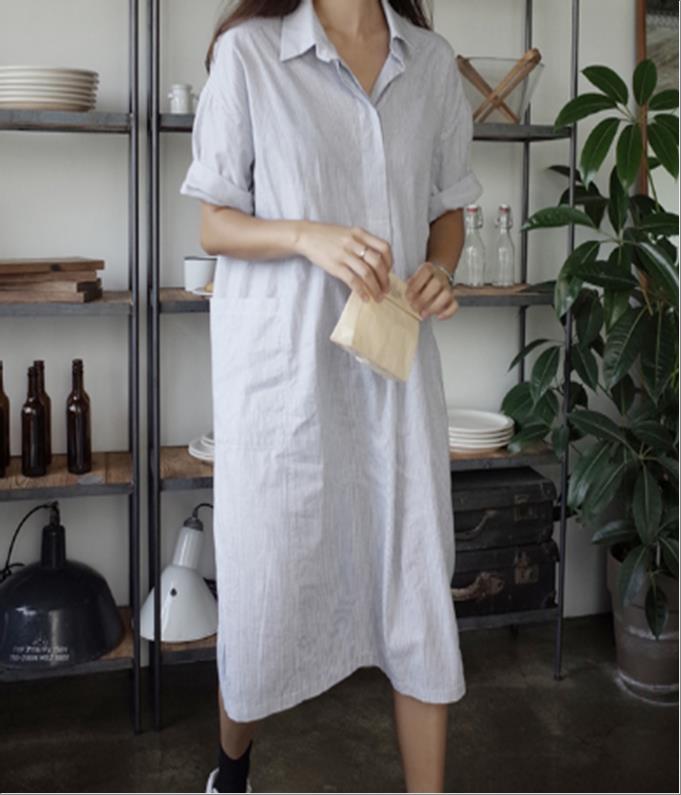韩国官网款女装-上衣스트라이프원피스