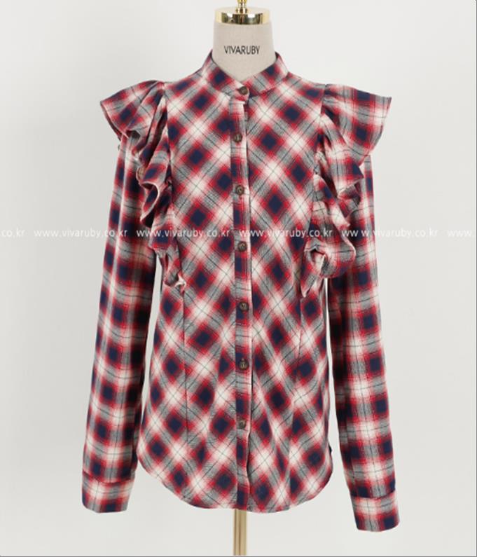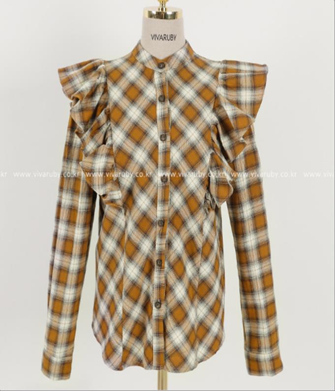 韩国官网款女装-上衣체크프릴NB
