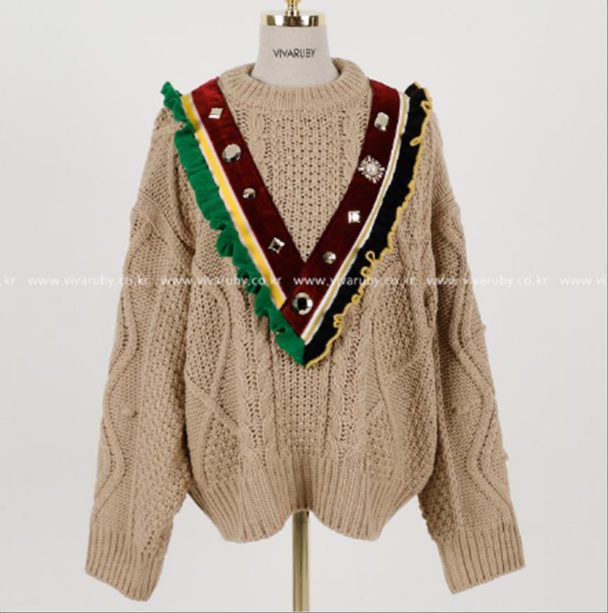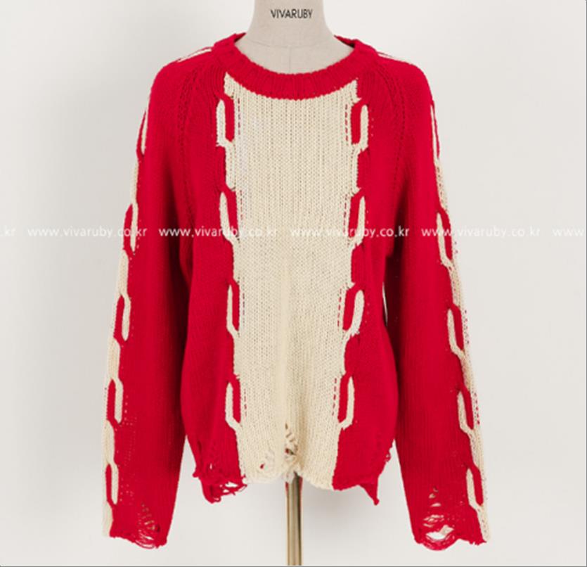 韩国官网款女装-上衣배색꽈배기NT
