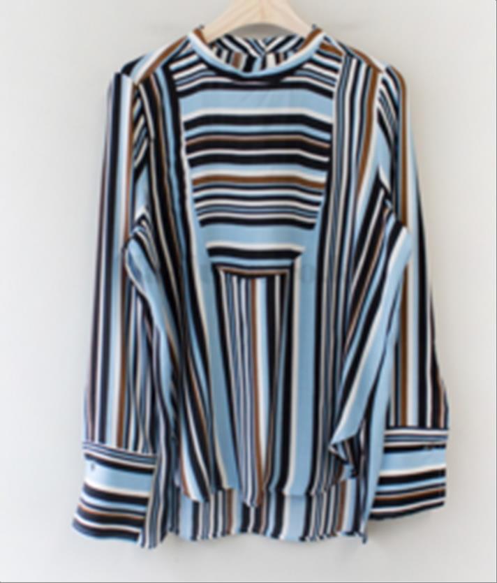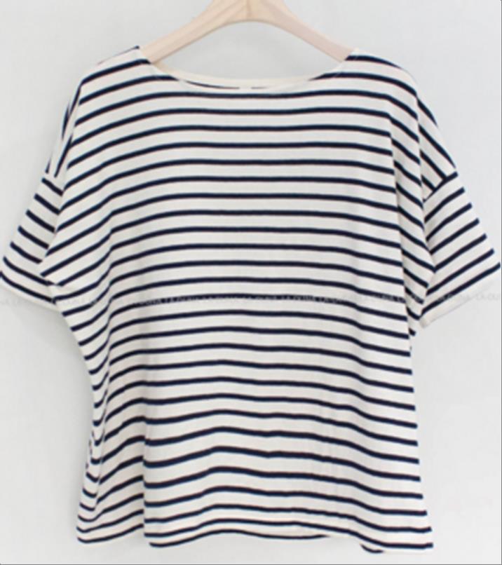 韩国官网款女装-上衣머신스트라이프티