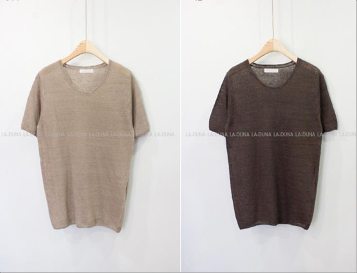 韩国官网款女装-上衣니트린넨반팔