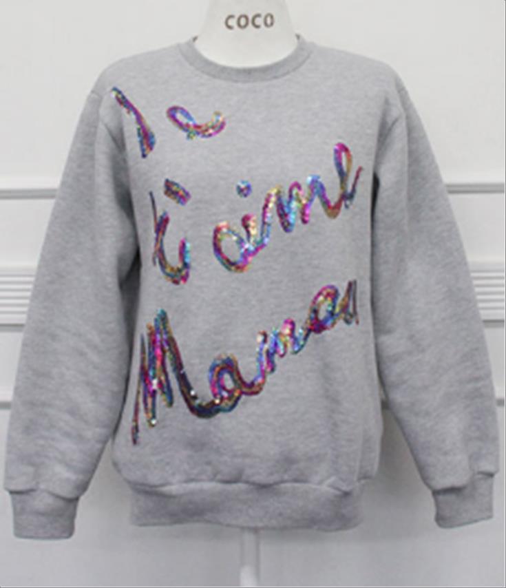韩国官网款女装-上衣비딩영문맨투맨T