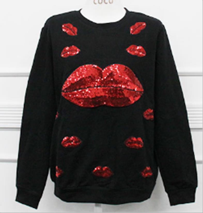 韩国官网款女装-上衣입술비즈줄T