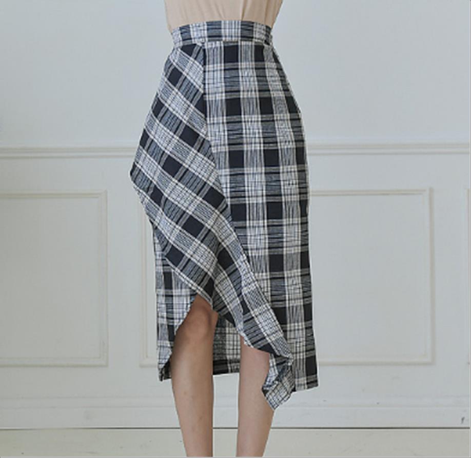 韩国官网款女装-裙子프릴체크 SK