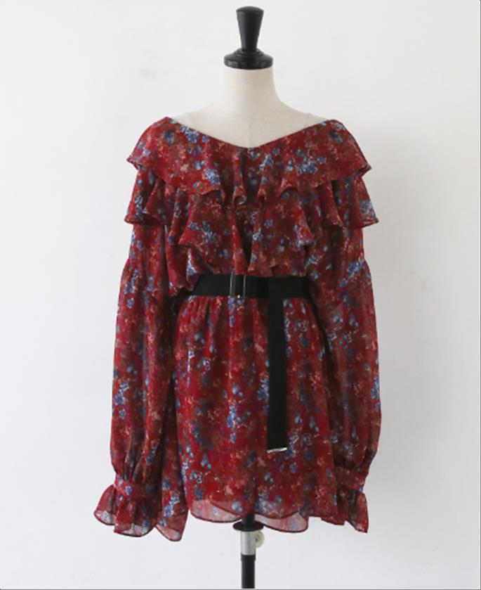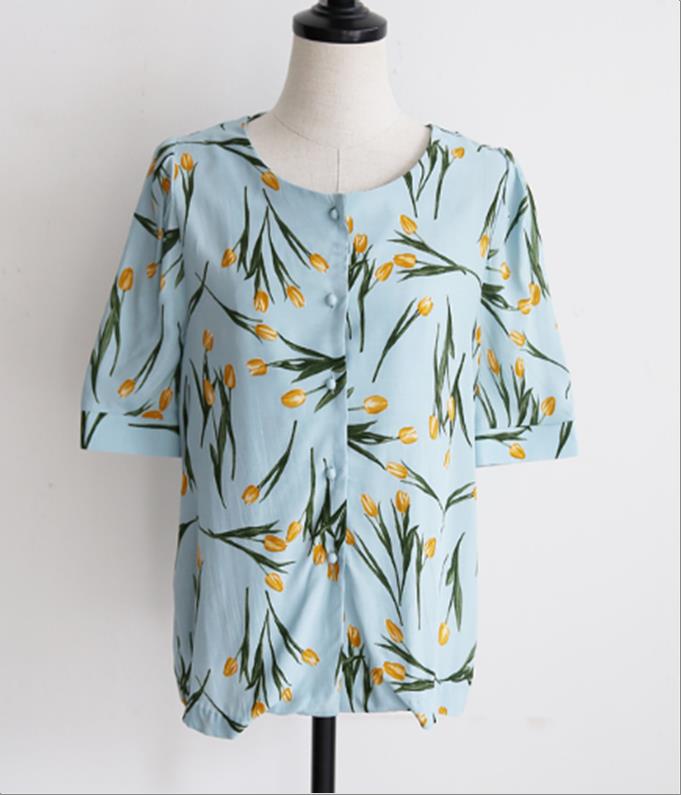 韩国官网款女装-上衣튤립반팔BL