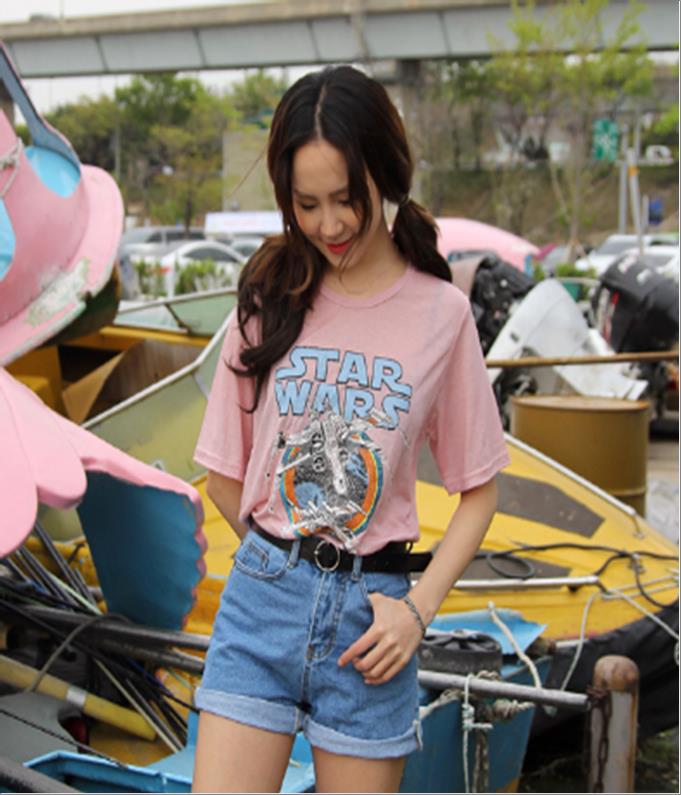 韩国官网款女装-上衣스타워즈나염T