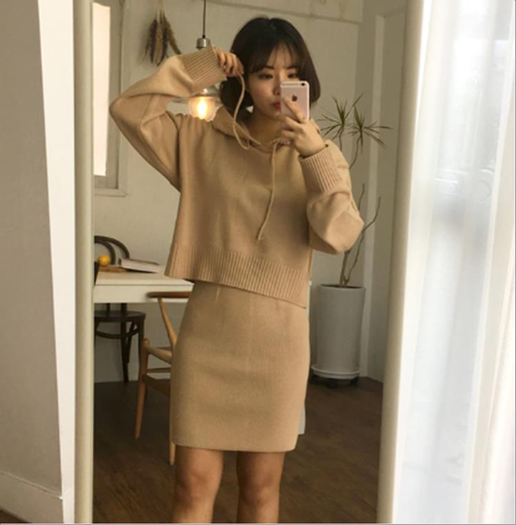 韩国官网款女装-上衣후드니트세트