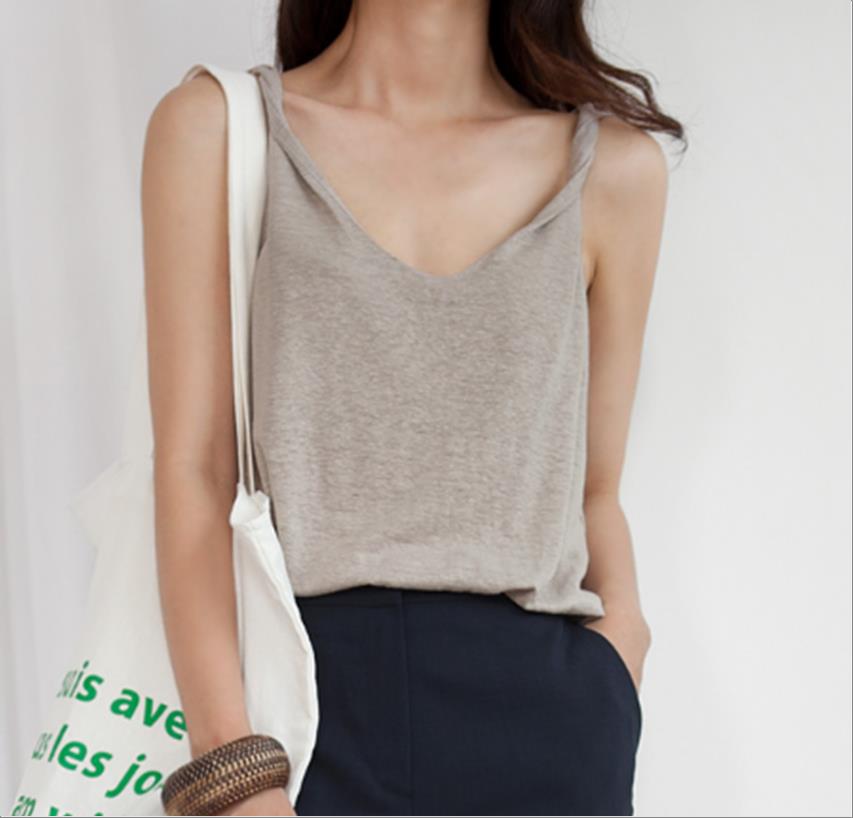 韩国官网款女装-上衣꼬임린넨나시