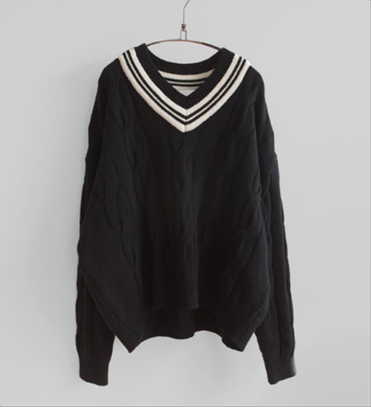 韩国官网款女装-上衣브이넥램스니트