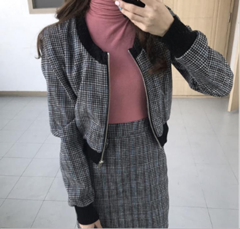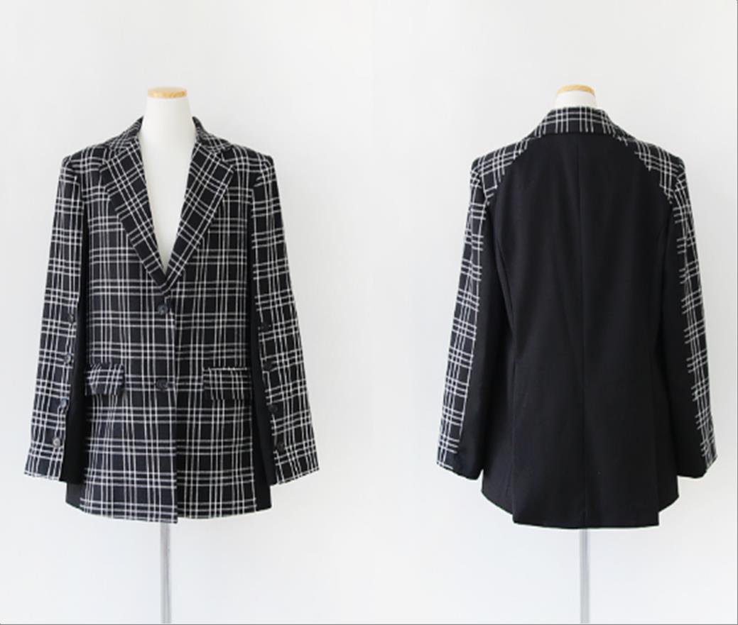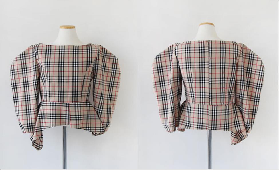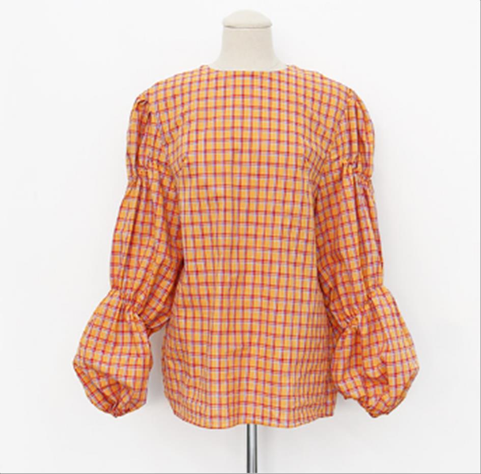 韩国官网款女装-上衣클래식체크퍼프BL