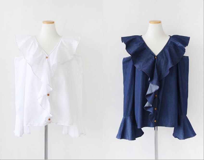 韩国官网款女装-上衣벨벳프릴OTP