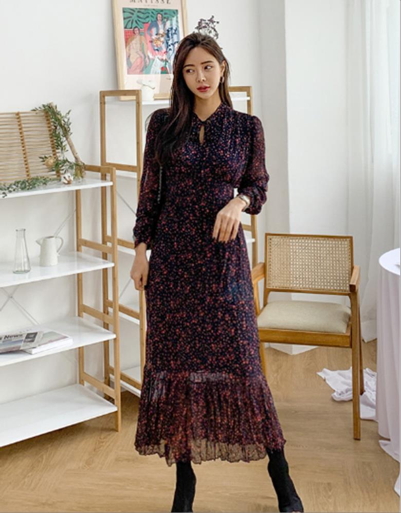 韩国官网款벨벳쉬폰롱OPS
