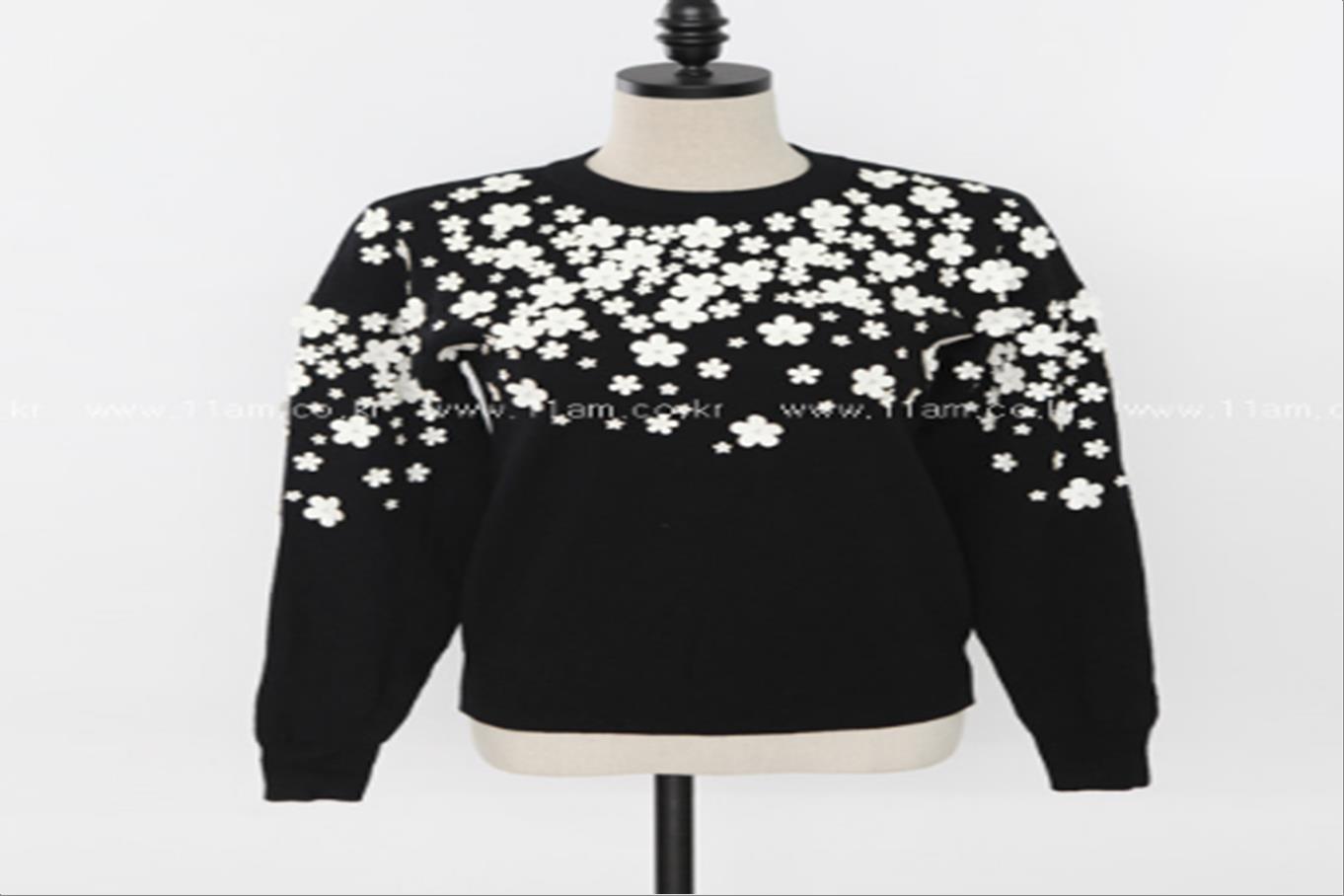 韩国官网款女装-上衣샤넬꽃니트