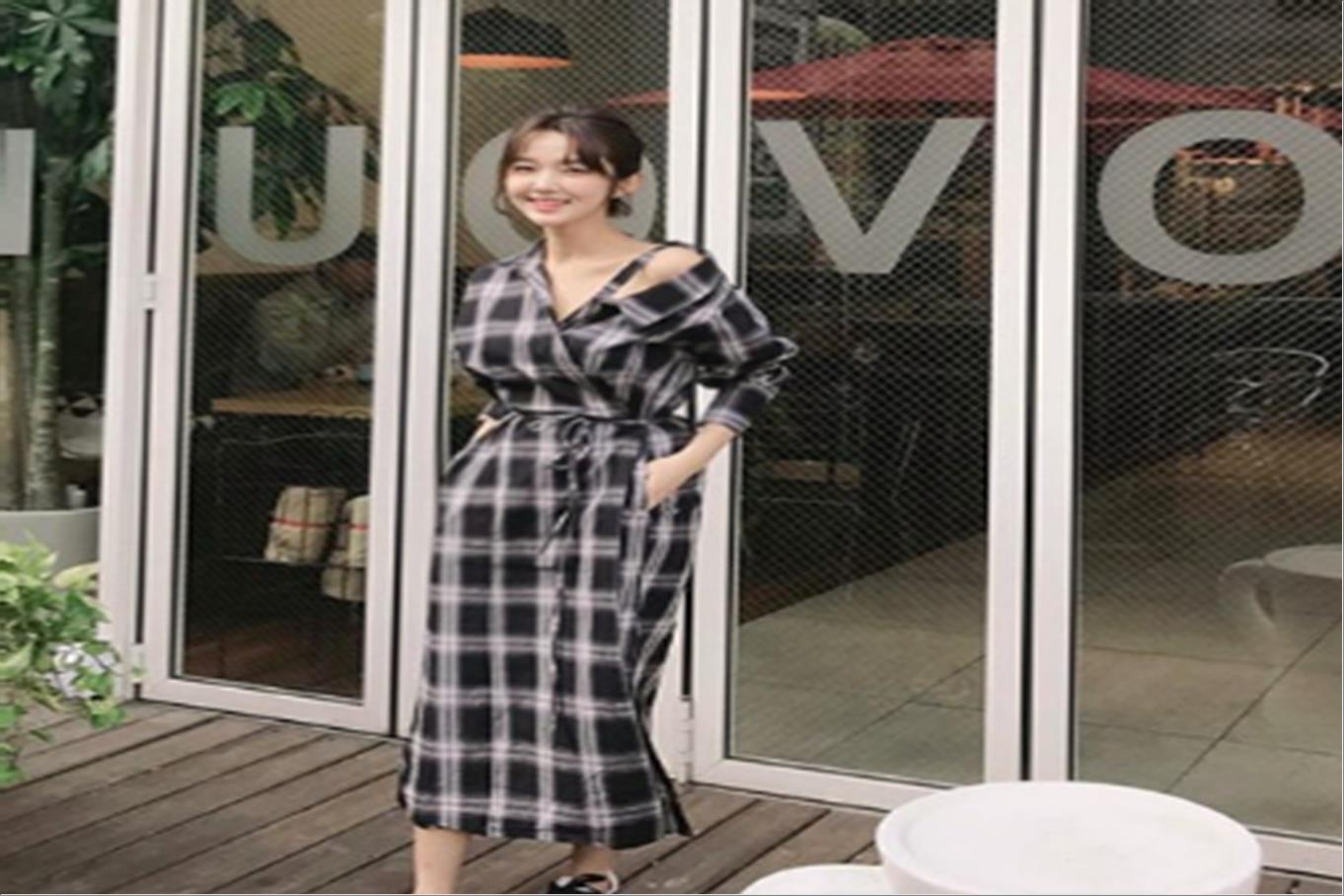 韩国官网款女装-裙子체크롱NB