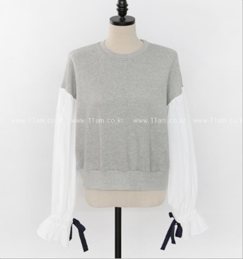 韩国官网款女装-上衣소매배색T