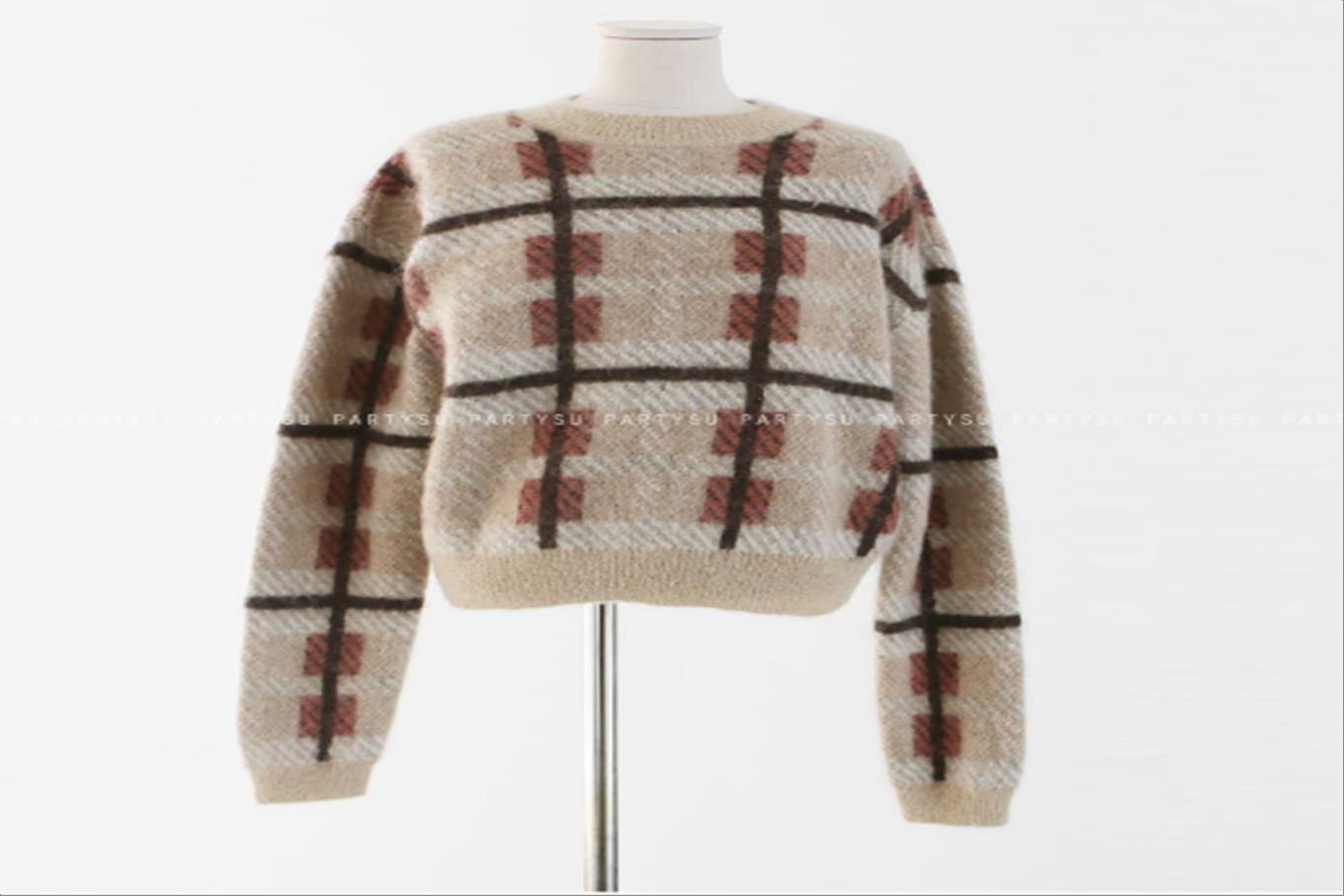 韩国官网款女装-上衣체크니트