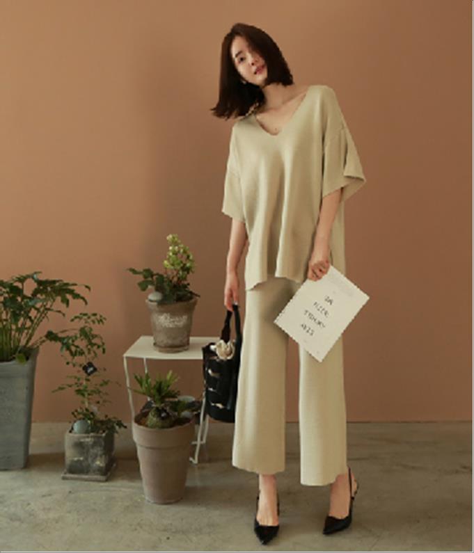 韩国官网款女装-上衣V넥세트
