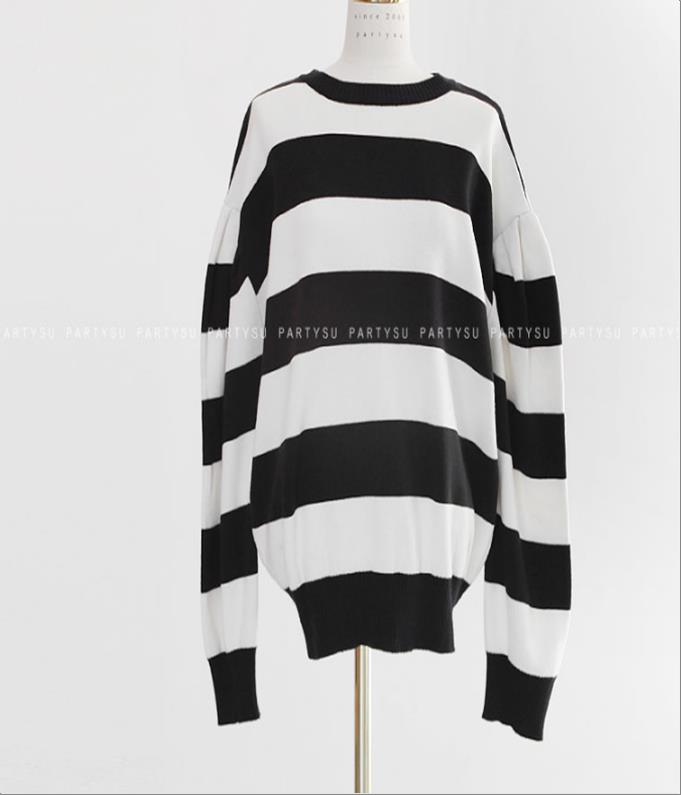 韩国官网款女装-上衣단가라퍼프니트