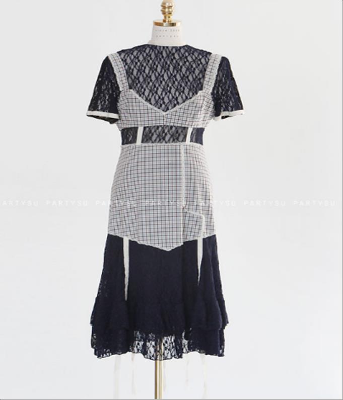 韩国官网款女装-裙子체크레이스OPS