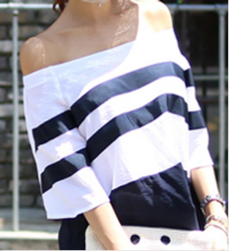 韩国官网款女装-上衣배색골지Y