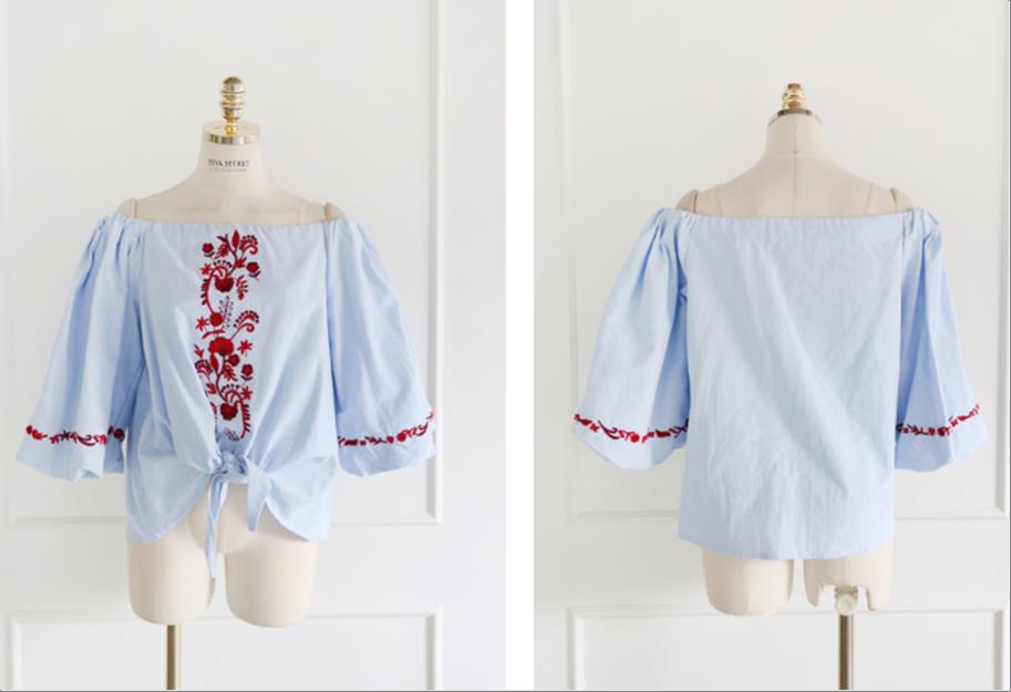 韩国官网款女装-上衣빨강자수BL