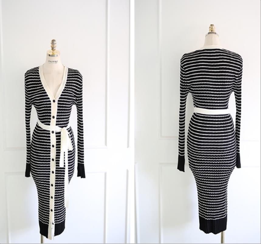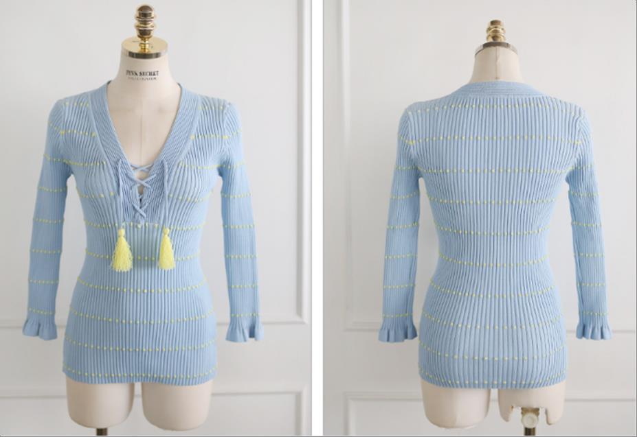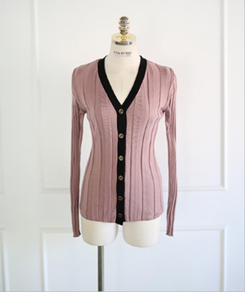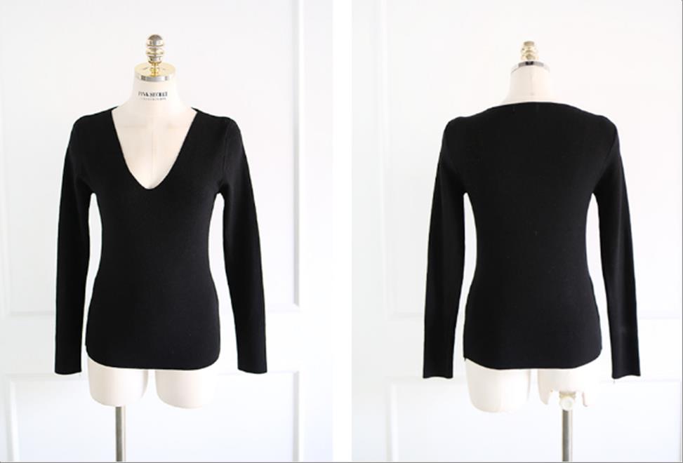 韩国官网款女装-上衣브이넥슬림니트