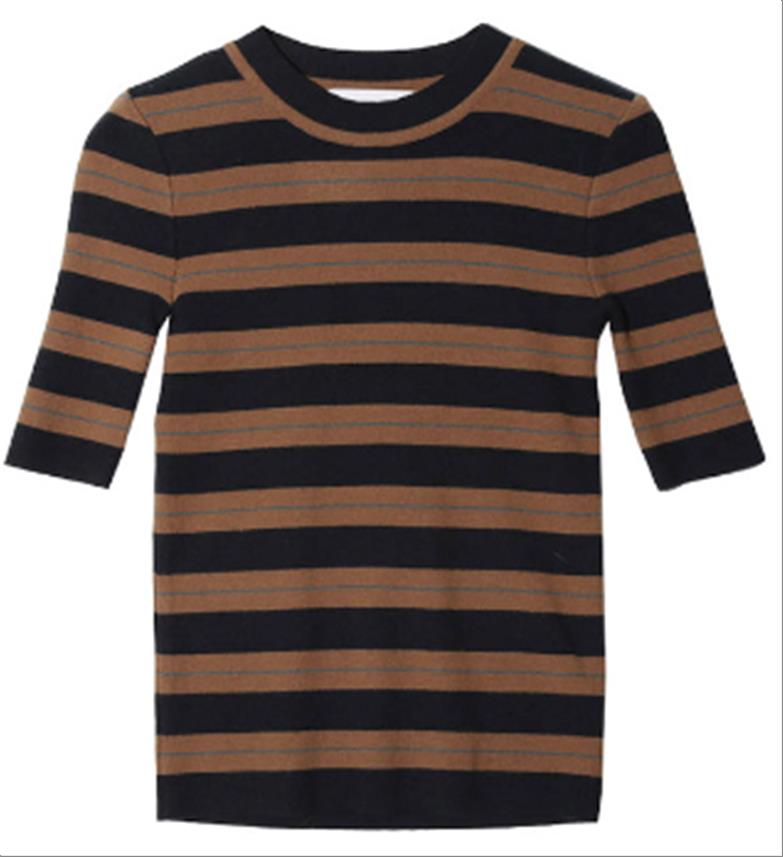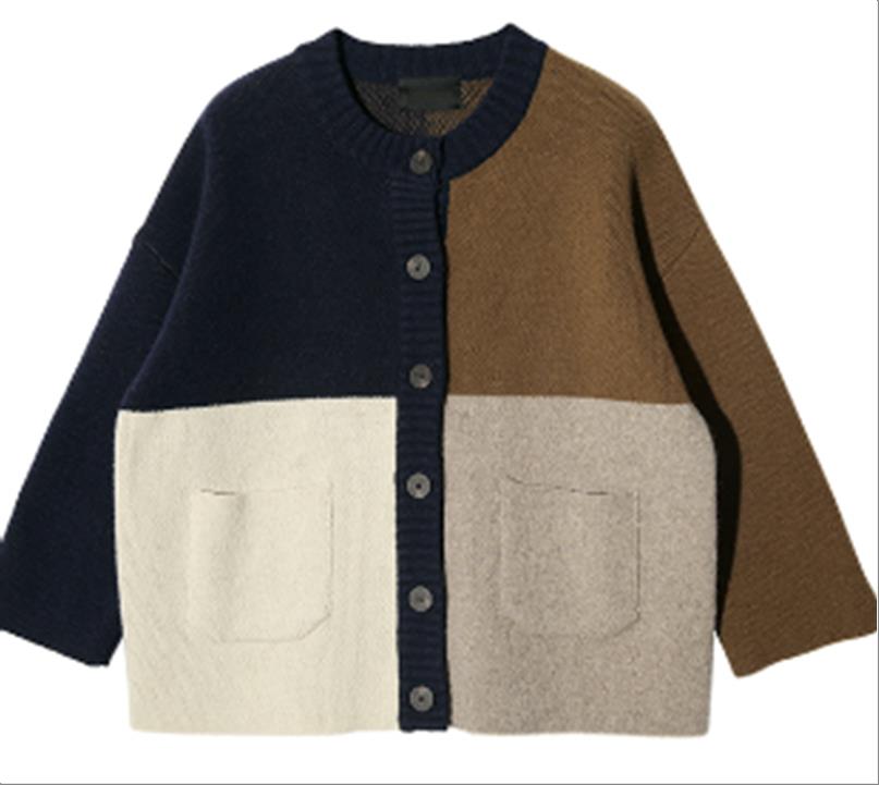 韩国官网款女装-上衣셀린배색니트