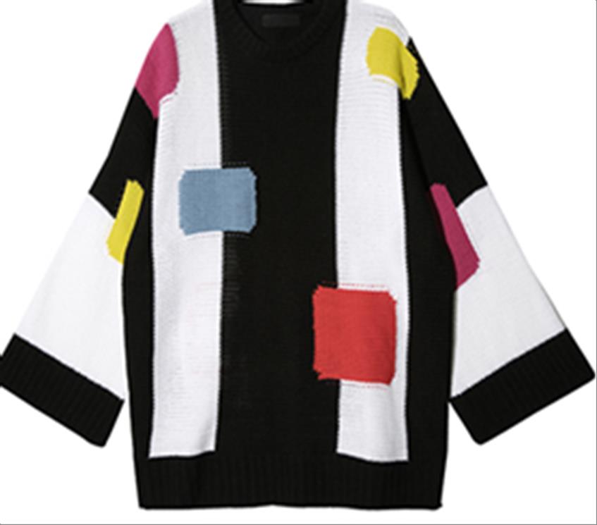 韩国官网款女装-上衣인타샤배색니트