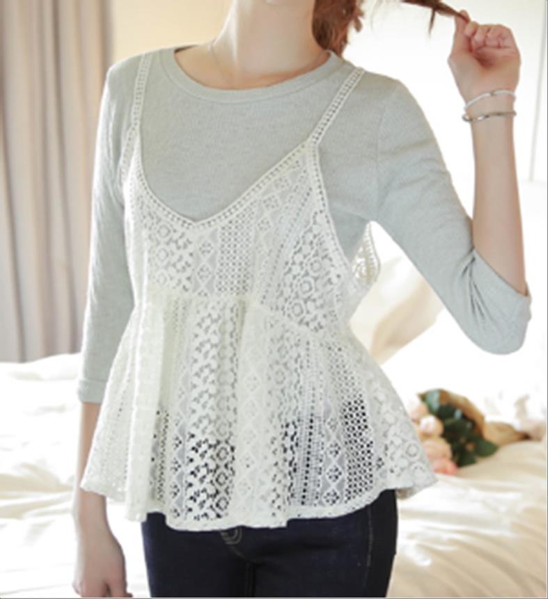 韩国官网款女装-上衣레이스탑