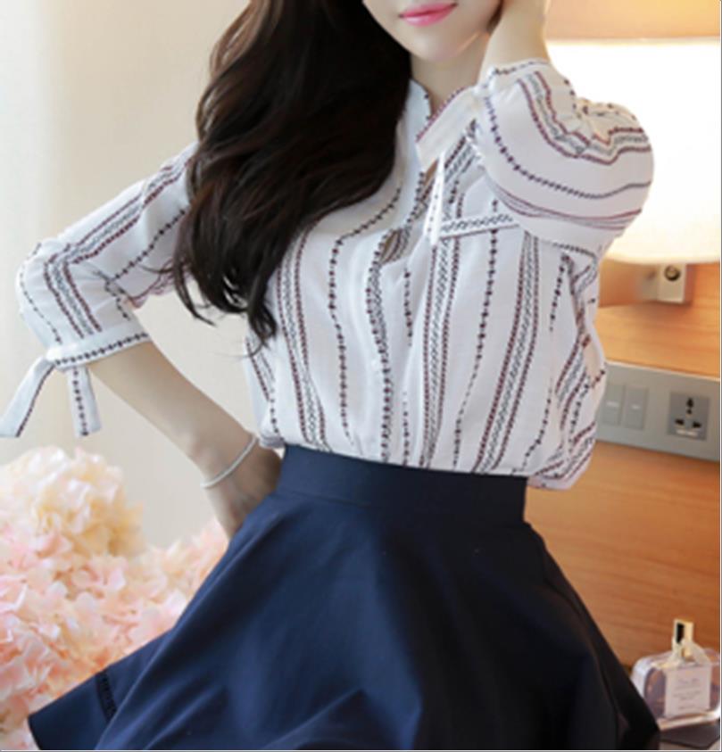 韩国官网款女装-上衣리본끈블라우스