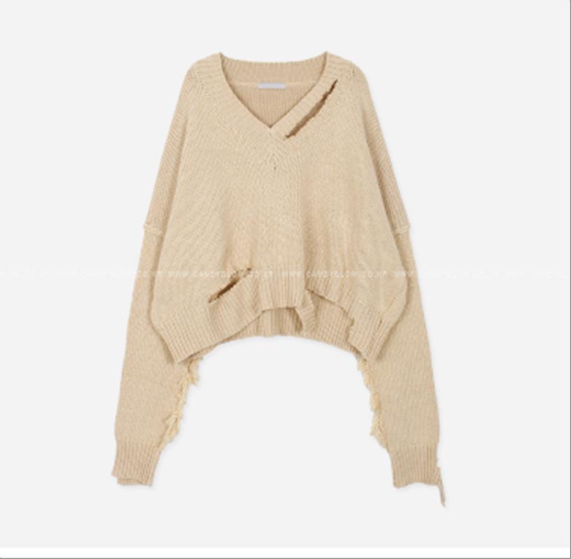 韩国官网款女装-上衣데미지니트