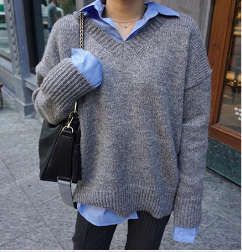 韩国官网款女装-上衣셀린V니트