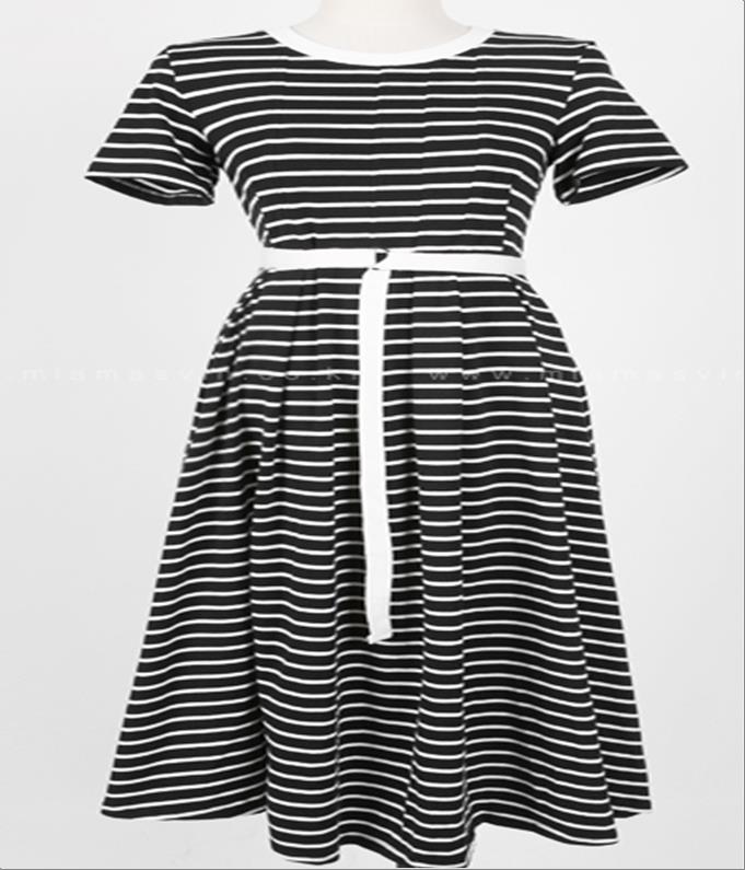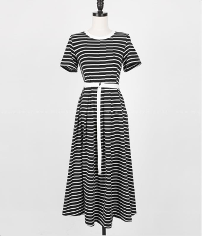 韩国官网款女装-裙子잔줄단가라배색끈
