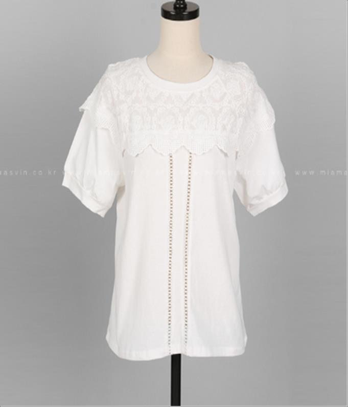 韩国官网款女装-上衣크림레이스T