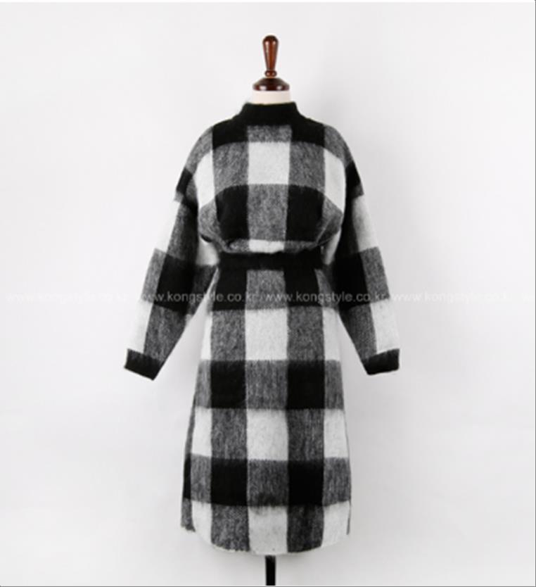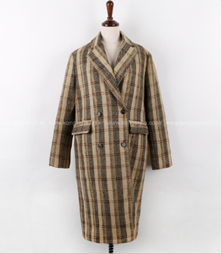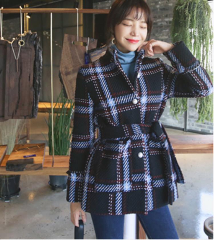 韩国官网款女装-外套체크코트