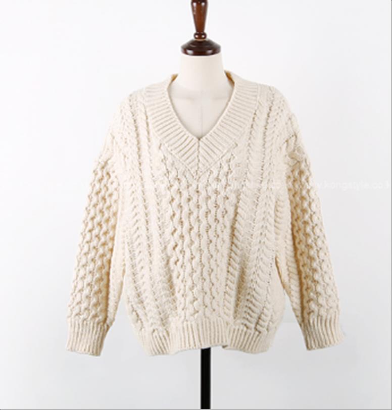 韩国官网款女装-上衣V꽈배기