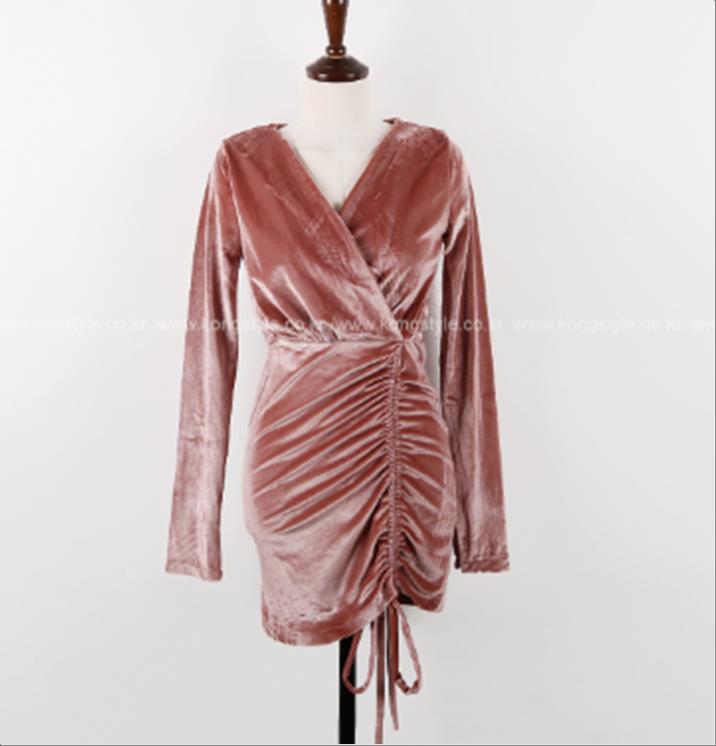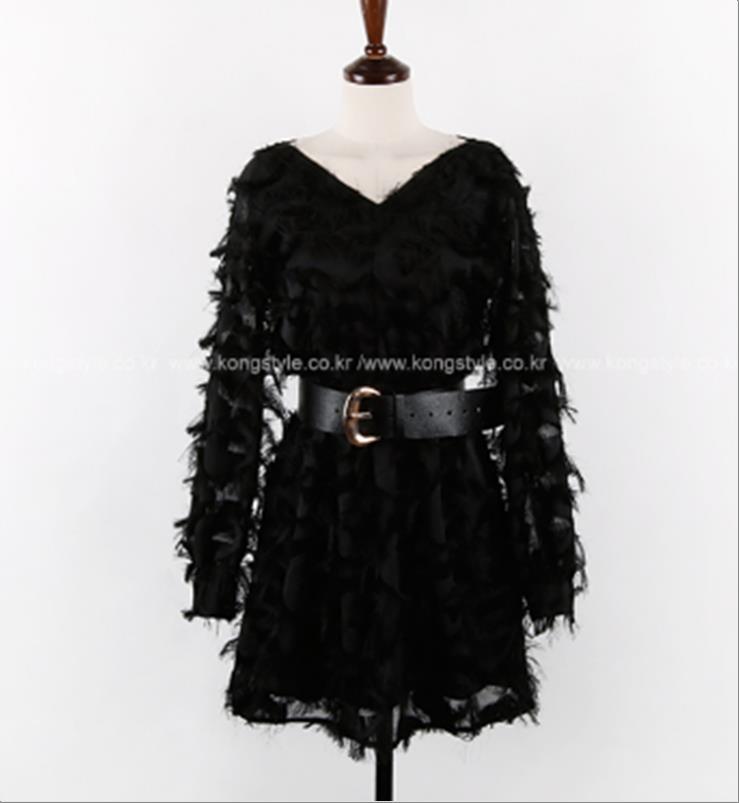 韩国官网款女装-上衣깃털V원피스