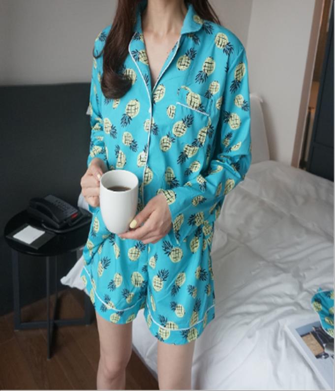 韩国官网款女装-上衣파인잠옷세트