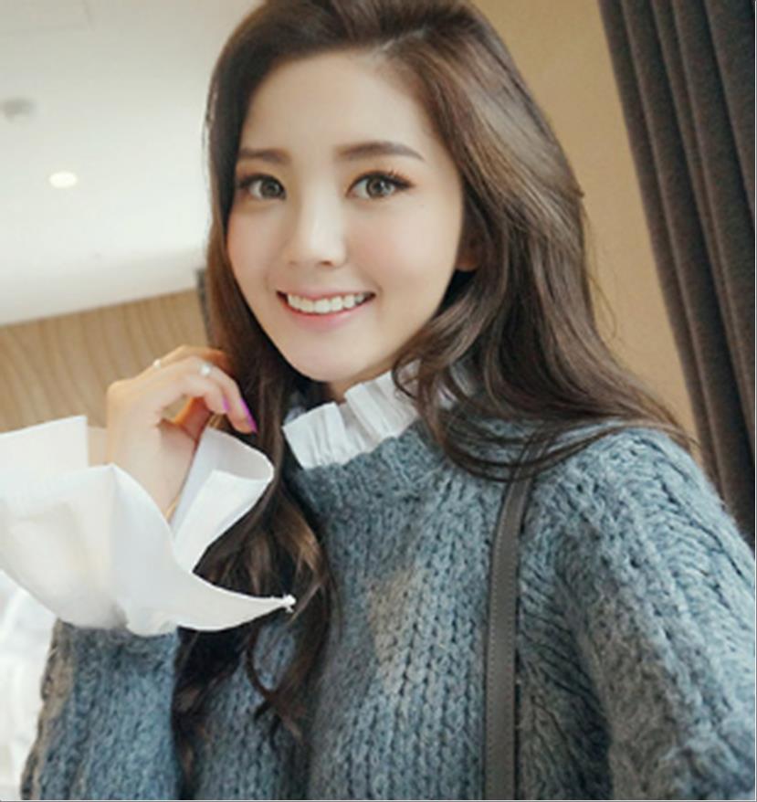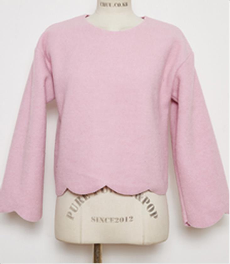 韩国官网款女装-上衣소매프릴니트