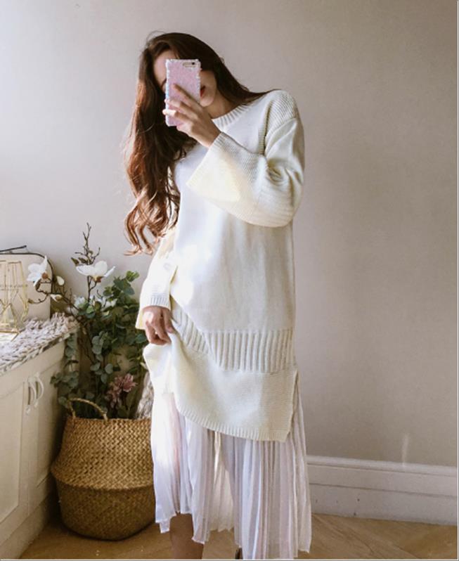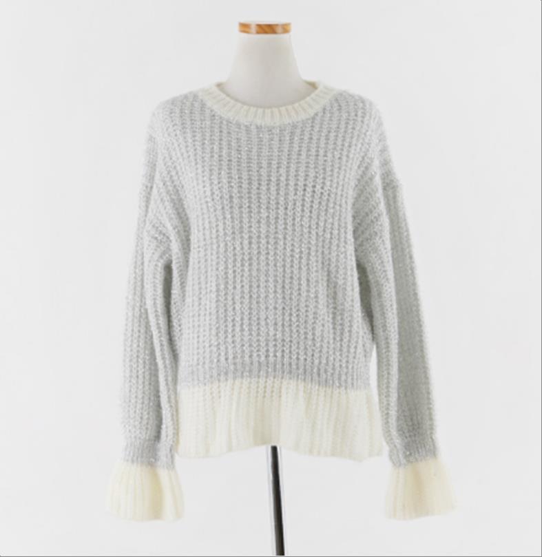 韩国官网款女装-上衣아일렛골지니트